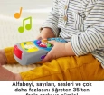Bebeğiniz düğmelere bastığında ekranın ışığı yanar ve rakamları, alfabeyi, zıt anlamlıları, renkleri ve daha fazlasını öğreten şarkı ve cümlelerle ödüllendirilir.