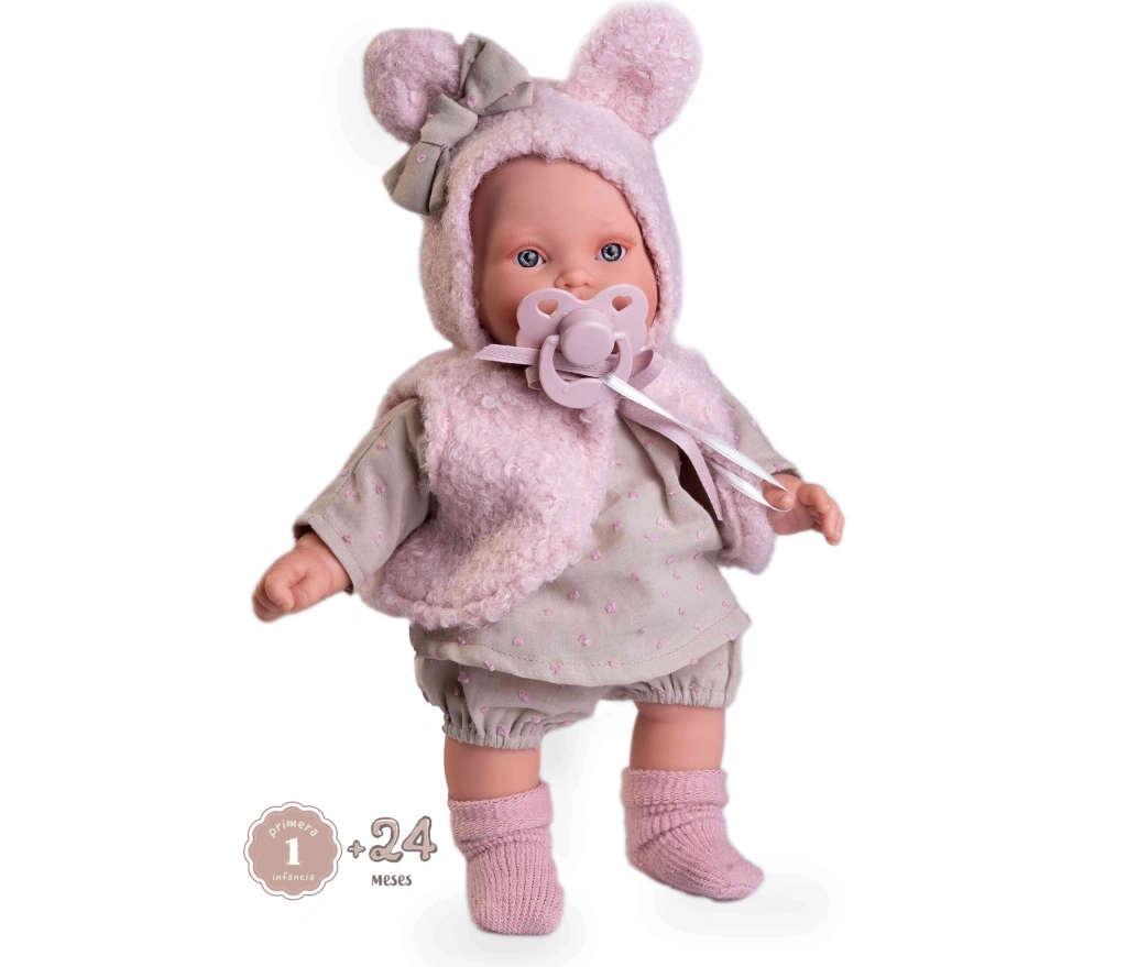 Hatta başlığında bir kurdele bile var! Muñecas Antonio Juan'dan ses mekanizmalı bir bebek.